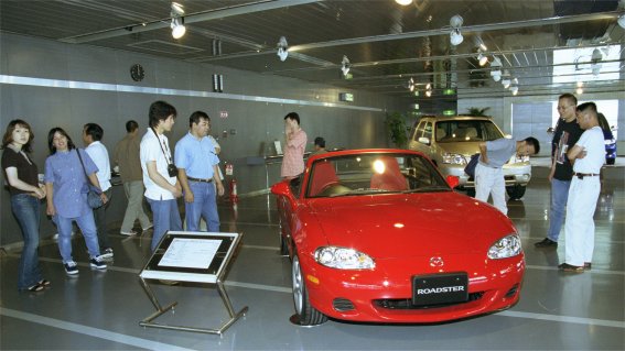 工場に有るマツダミュージアムへ行くまでの広さや、敷地内にマツダの短期大学が有る事にメンバー全員が驚いていました。マツダミュージアムではエ