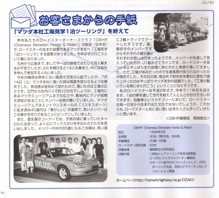 (当日マツダのプロのカメラマンに寄る撮影。この写真がマツダの社内報に掲載されま