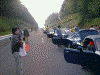 朝7:30三次試験場入場、高速周回路に続々と全国から集まったロードスターを3列縦隊