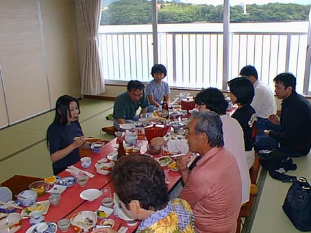 しめました。昼食は「萩」の宿でも老舗の「楽天地」で海の幸をふんだんに使った会席善を満喫しました。(私が下見に行った時は時節柄白魚が出ました。海を