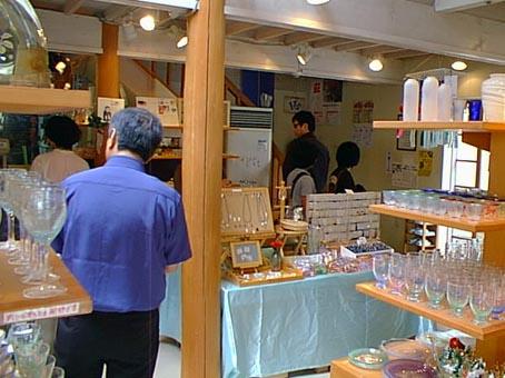 食後は萩の町より少し離れた「萩ガラス工房」で手作りガラスを見学。