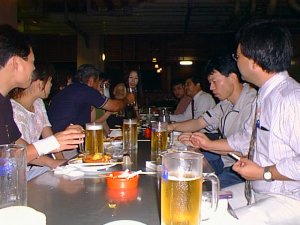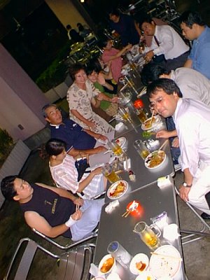 昨年に引き続き恒例のビアパーティが始まりました、あいにくこの日 は雨混じりの天気で屋根のあるテーブル行いましたがビールのお変わりが進むにつれ話の方は大いに盛り上がりました。