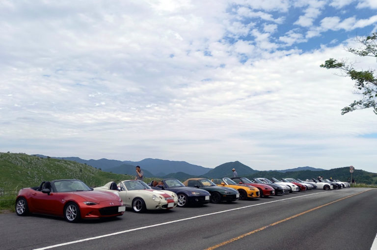 あとは帰るだけ…なんだけど、長者ヶ森 駐車場手前の見晴らしのいい場所に、ちょうどロド20台駐車できそうな場所があったので、ズラーっと並べて記念撮影w